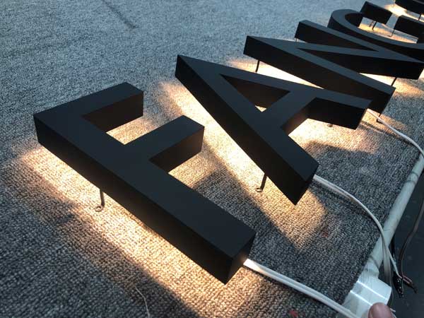 - Chữ nổi inox đen bóng có đèn LED hắt chân